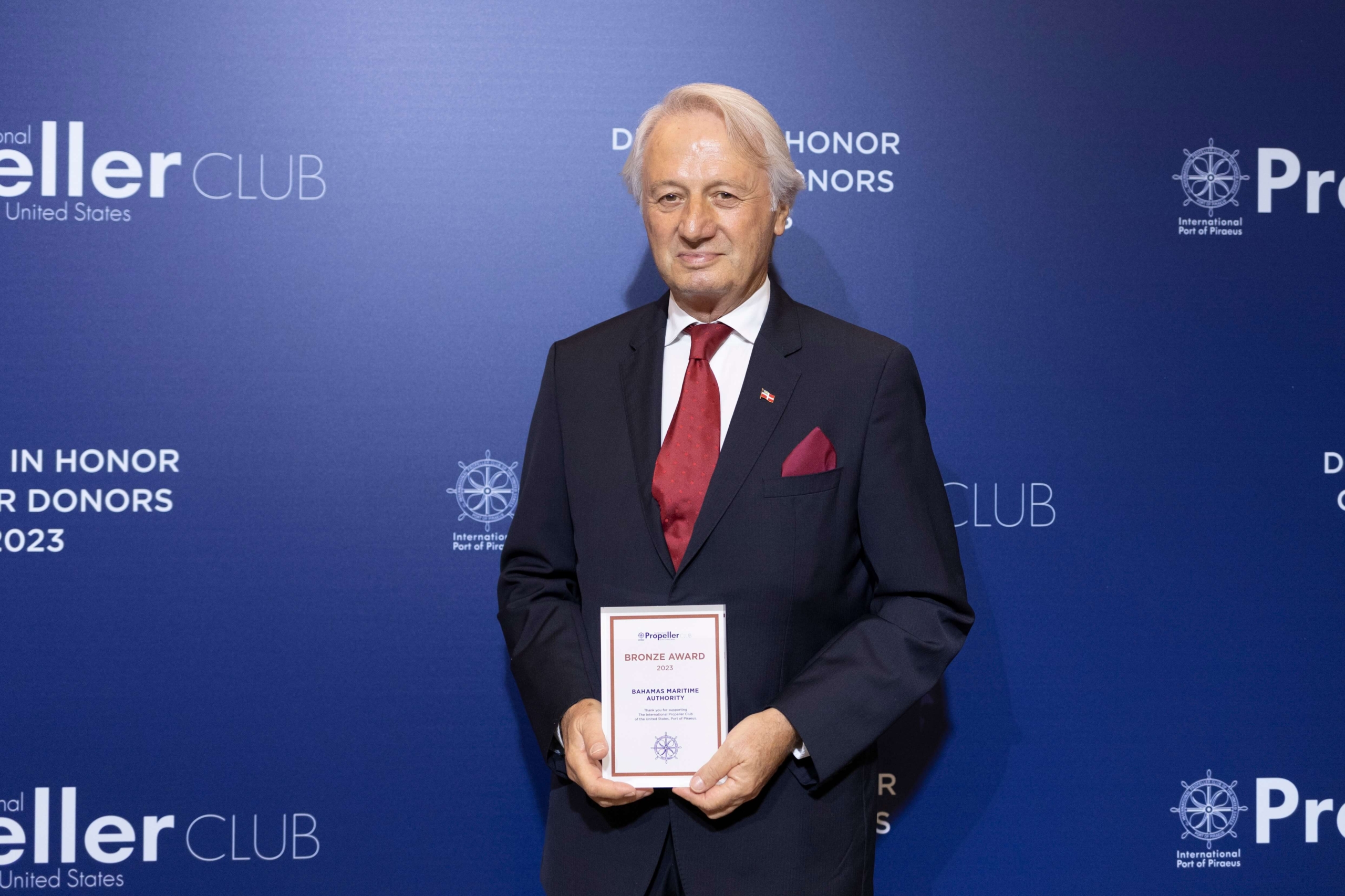 The BMA attends the annual Propeller Club dinner in Honour of Donors Category BMA News Date Posted 14 November 2023 Share Facebook Twitter LinkedIn Dimitri Tsiftsis, Regional Director of the Bahamas Maritime Authority (BMA), was pleased to represent The Flag at the annual Propeller Club dinner which was held on Monday, October 30 in the Caryatids Hall at the Grand Hyatt Hotel, Athens. The event was held in honour of the club’s donors and was attended by 250 distinguished guests from the international shipping community. The BMA was among those organisations presented with a special plaque as a symbol of the Club’s appreciation for their support and valuable contribution. Overall the Propeller Club has some 950 active members. Welcoming guests was the Propeller Club’s Governor, Chrysanthi Stefanou, who is also President of the Club’s Events and Forums Committee, followed by a greeting from the club’s President, Costis Frangoulis, who said to attendees, “Tonight is dedicated to all of you. Our primary goal is the development of our social work, which we could not achieve without your valuable input and contribution.” Theofilos Xenakoudis, Governor and Chairman of the Fundraising Committee, then thanked all attending companies for their support. Finally, the President, along with Board members, presented the representative from each company with an honorary plaque. The very pleasant evening was rounded off by a music programme by the Odin’s House Project band.